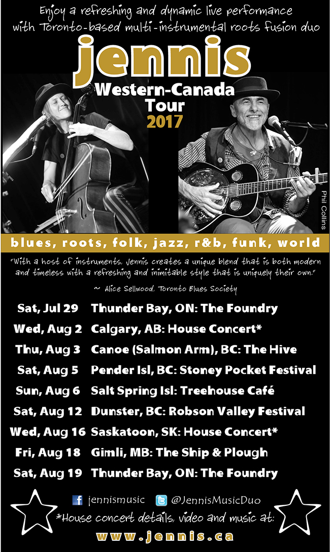 We're happy to be touring west again this year. We have some great gigs lined up and they're listed here. If you know anyone who is near to where we're playing and feel that they might enjoy what we do, we'd appreciate if you could let them know about it.