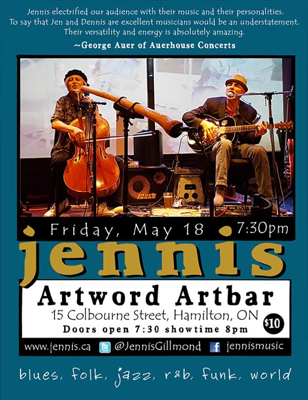 Jennis had a great gig at a house concert in Toronto a few days ago. We have a busy May lined up - details below. We are proud to announce that we will be part of the Kitchener Blues Festival in August.