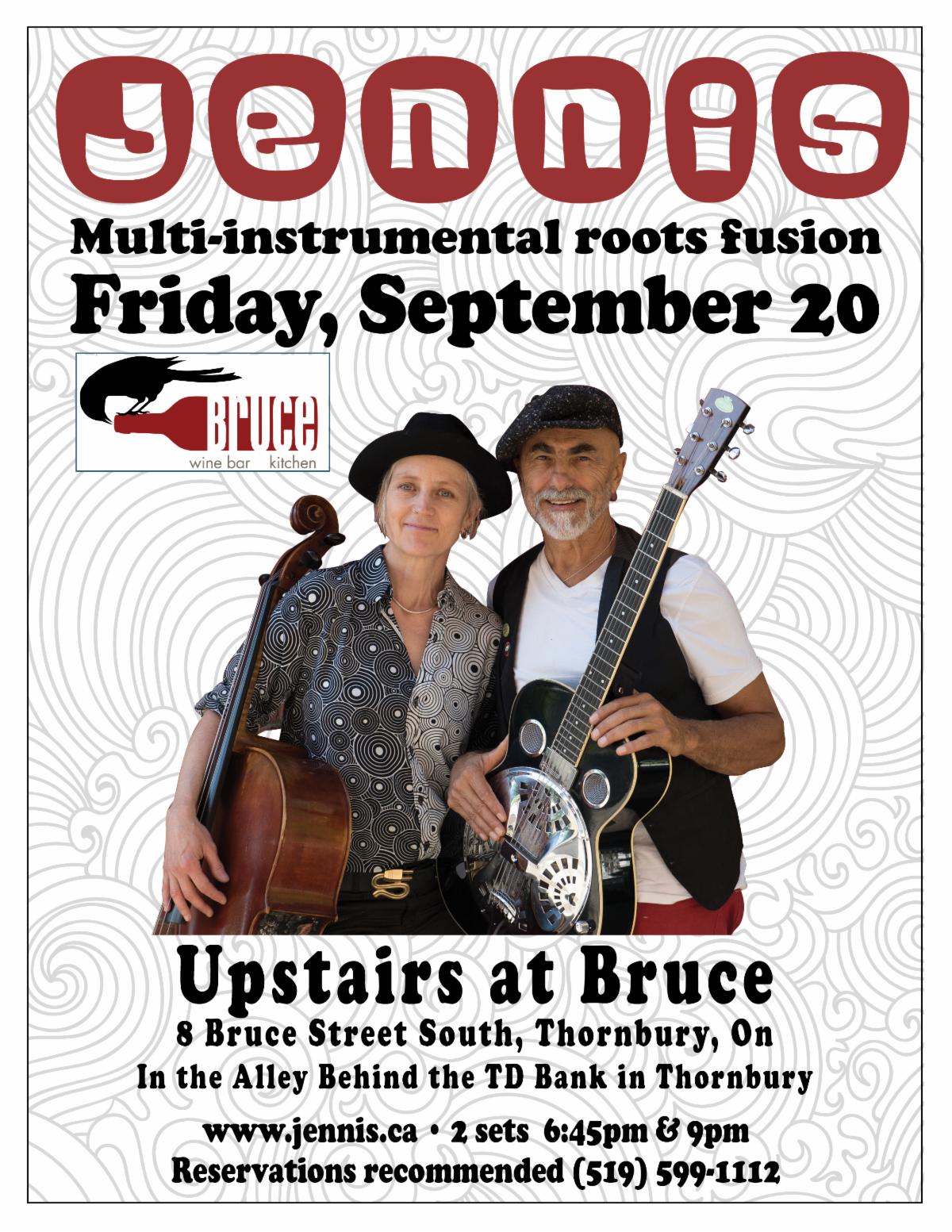 JENNIS hits the road again in September. We are playing Bruce Wine Bar in Thornbury on Fri, Sept 20 - 2 sets, one at 6:45 and one at 9pm. Reservations are recommended. See more deets below.